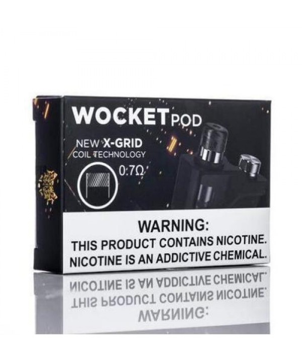 The SnowWolf Wocket Replacement Pod is a refillable E-Liquid pod that holds up to 3ml of eJuice. It features a threaded top-fill system and is integrated with a 0.7ohm X-Grid (Iron Chromium Aluminum A1) coil.